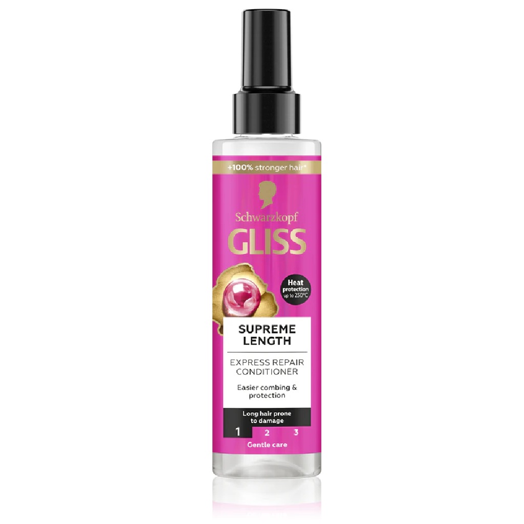Gliss kondicionér poskytuje vlasům ochranu před teplem až do 230°C a opravu dlouhých vlasů.