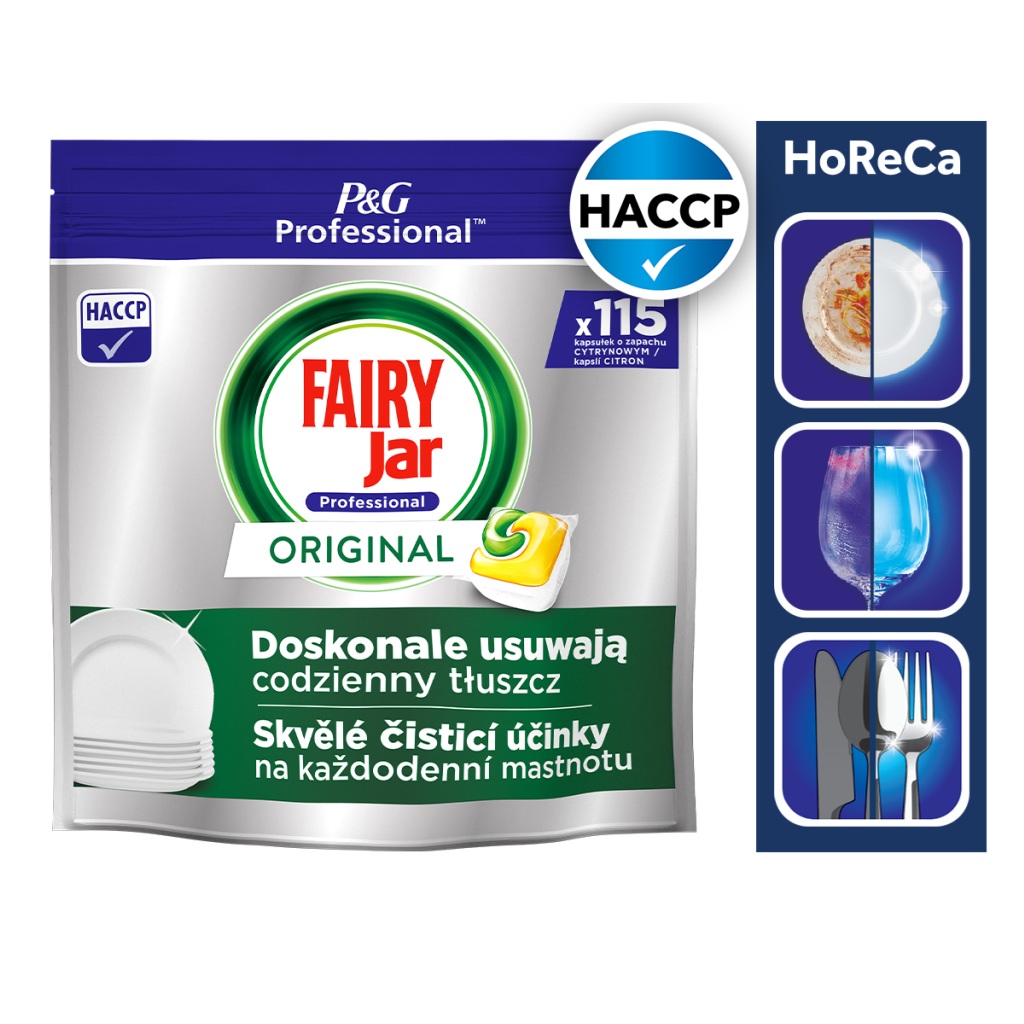 Povrchově aktivní látky zajistí dokonalé odstranění zbytků jídel a mastnoty z nádobí a zabraňují jejich opětovnému usazování na příborech, talířích a skle. Vhodné i pro myčky skla. Účinné při všech stupních tvrdosti vody. Obaj je recyklovatelný. V souladu s HACCP.