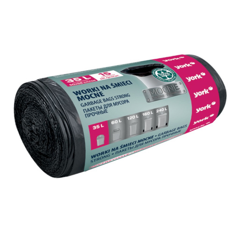 Pevné pytle LDPE na odpadky o objemu 35 l. Netrhají se ani při přenášení velmi těžkého odpadu.