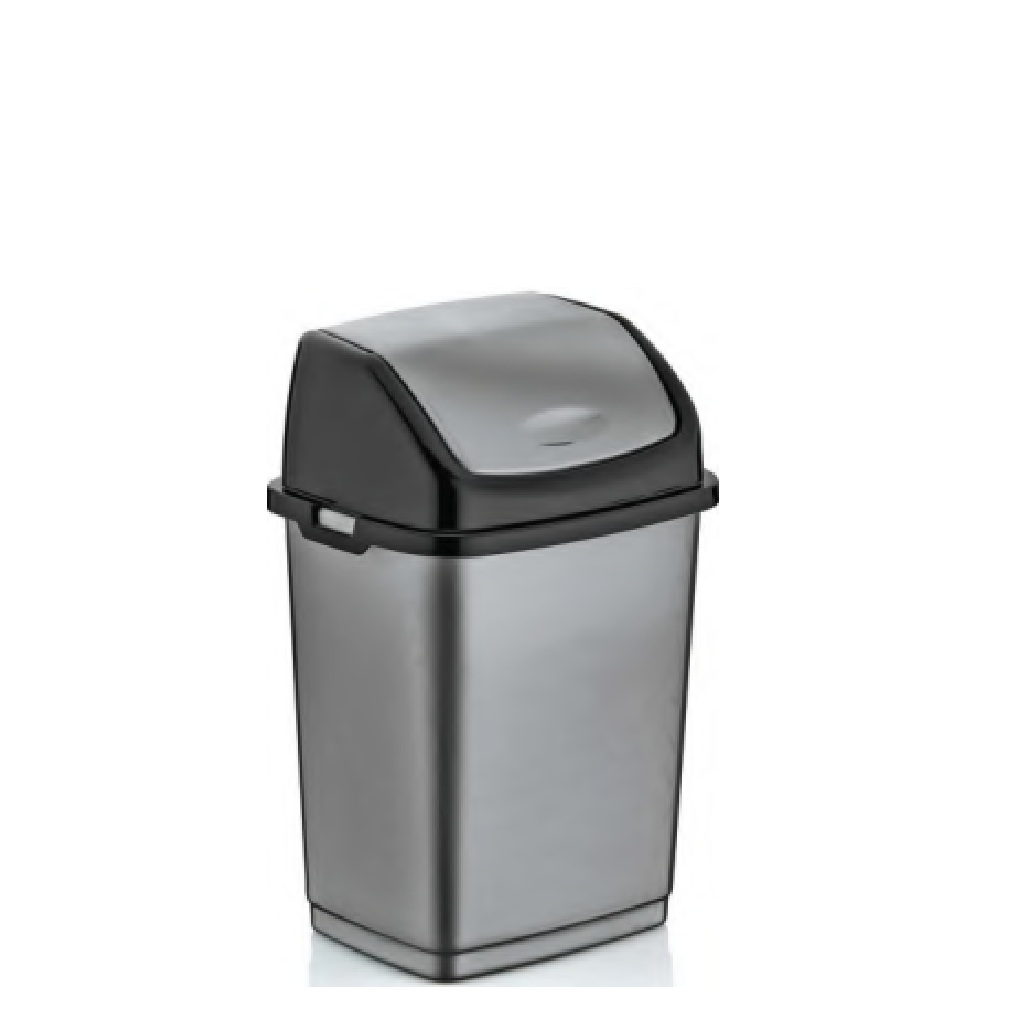 Plastový odpadkový koš s výklopným víkem velikostně vhodný na toalety nebo drobný odpad.