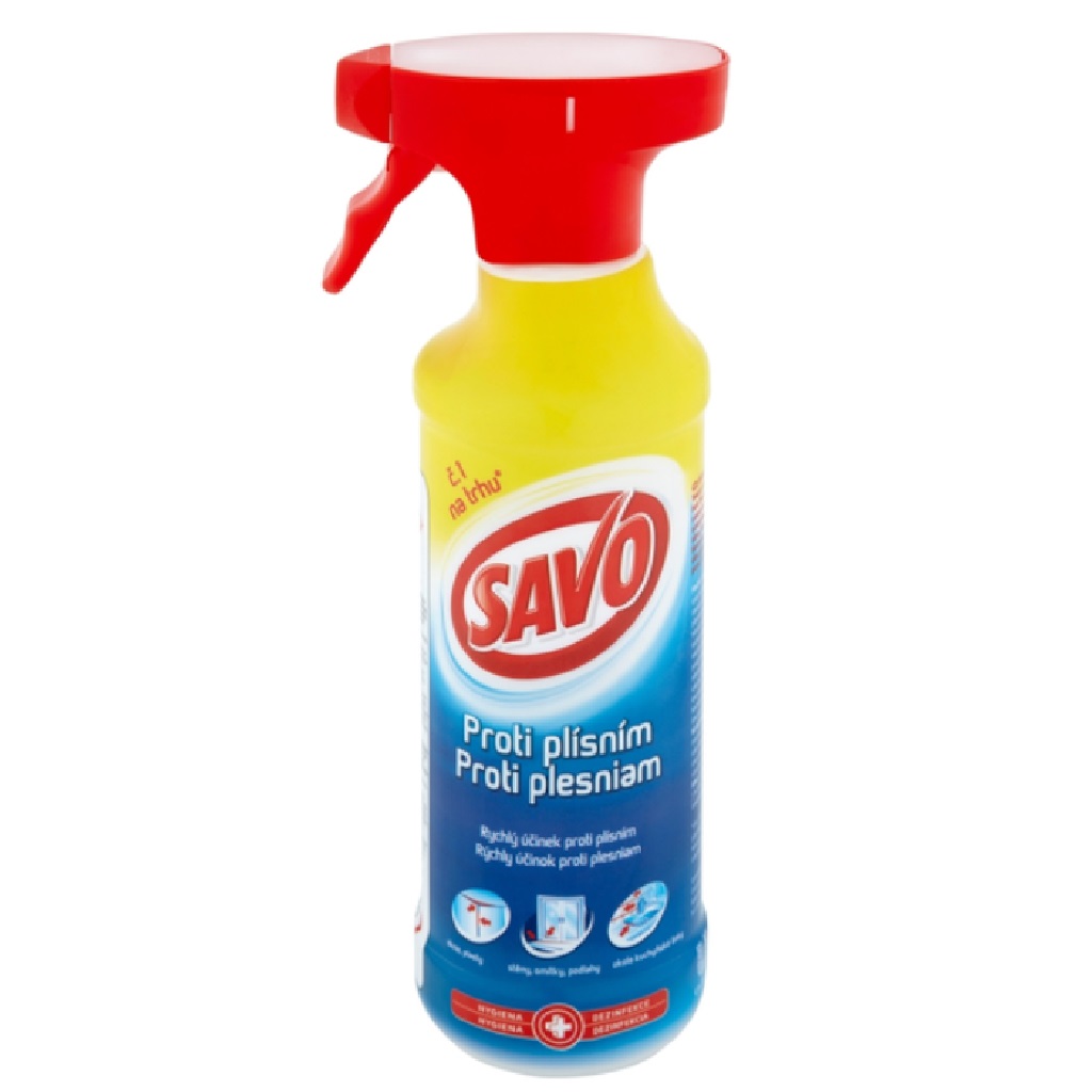 Navíc má Savo Proti plísním dezinfekční účinek SAVO Proti plísním je vhodný k použití na dlaždice, plasty, omítky, malby zdí i dřevo v interiéru a exteriéru. Hlavní vlastnosti produktu: Nejprodávanější prostředek na trhu. Účinně odstraní plísně, řasy, kvasinky v celé domácnosti Okamžitý účinek s viditelnými výsledky S dezinfekčními a bělícími účinky Popis: SAVO Proti plísním výborně účinkuje proti vegetativním formám plísní, kvasinkám, řasám a má dezinfekční účinek. Je dodáván v mechanickém rozprašovači, který zajišťuje snadnou manipulaci a usnadňuje likvidaci plísní i na obtížně přístupných místech.