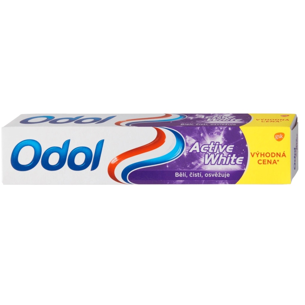 Odol zubní pasta Active White odstraňuje skvrny a obnovuje přirozenou barvu vašich zubů. Její mikročistící technologie pomáhá k čistému a zářivému efektu. Navíc obsahuje aktivní fluoridové částice, které pomáhají udržet čisté a zdravé zuby.